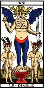 Enquanto a moça era atendida, especialmente, por Tranca-rua, via um monte de seres acorrentados- mulheres e homens. Era uma cena bem parecida com a imagem do arcano XV do Tarot de Marselha: O Diabo. O detalhe é que quando os olhavamos mais atentamente, nenhum deles tinha coração. Óbvio que essa é uma visão simbólica, que ele elucidou com uma inversão de uma passagem bíblica: “digas onde esta o teu coração e lhe direi onde esta o seu tesouro.” No caso, o tesouro delas estava na mão de outro, em posse de outro, e não foi feito grandes esforços para isso, muitas mulheres e alguns homens acreditam que amar é colocar o coração nas mãos do outro ser. Acreditam em um amor dramático, cheio de sacrifícios, cheio de privação e renúncia. É um amor pisciano no que esse apresenta relação com o cristianismo, ou seja, se não há sofrimento não há amor. Ou mais complexo ainda- amar é sofrer, doer, sacrificar-se. Todo esse cenário dramático que vemos em toda parte: religião, jornal, teatro, novela, música, escola, na vida de forma geral em que poucos buscam uma relação amorosa mais saudável e salutar.