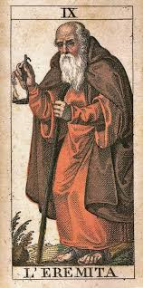 Um homem que se contenta com o sol, que tem o sol e a natureza não tem nada que possa fazer com que outros o bajulem. E isso me remete aos mestres do espaço, que nos chegam escondendo sua luz. Eles ficam até mesmo dentro do barril. Todas as vezes que falo disso a imagem que me vem a mente é o arcano IX do Tarot de Marselha.