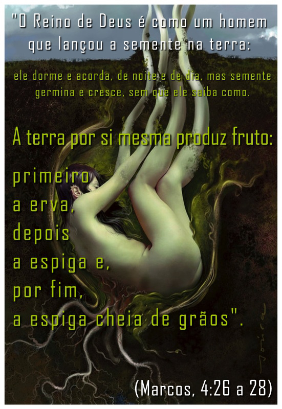 Na verdade, as boas novas é o reino dos céus compreendido como semente, como algo que necessita morrer para germinar. É na metáfora da semente que o início e o fim se une. O jardim do Éden e o jardineiro das almas nos faz renascer. É na metáfora da semente, que a ressurreição se faz magia, poesia, vida e encantamento.